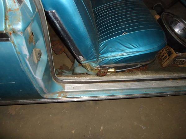 I bought my Polara from the second owner. He bought it in 1966. Put it in storage in 1971 and never took it out of storage until last year. He claims it has 23,000 actual miles. Has a 318 V8 that turns over and push button automatic. Car has floor rust but the frame rails are solid. Torsion bar boxes are solid also. Rockers have minor rust. Bottom of back fenders have some minor rust also. Inner fenders behind wheels to trunk floor are solid. Doors close good. Inner fenders under hood are clean. No brakes. Missing one original hubcap. Missing one head light ring. Inside of trunk has original floor cover and inner card board that covers inner quarters. Have the original keys.
