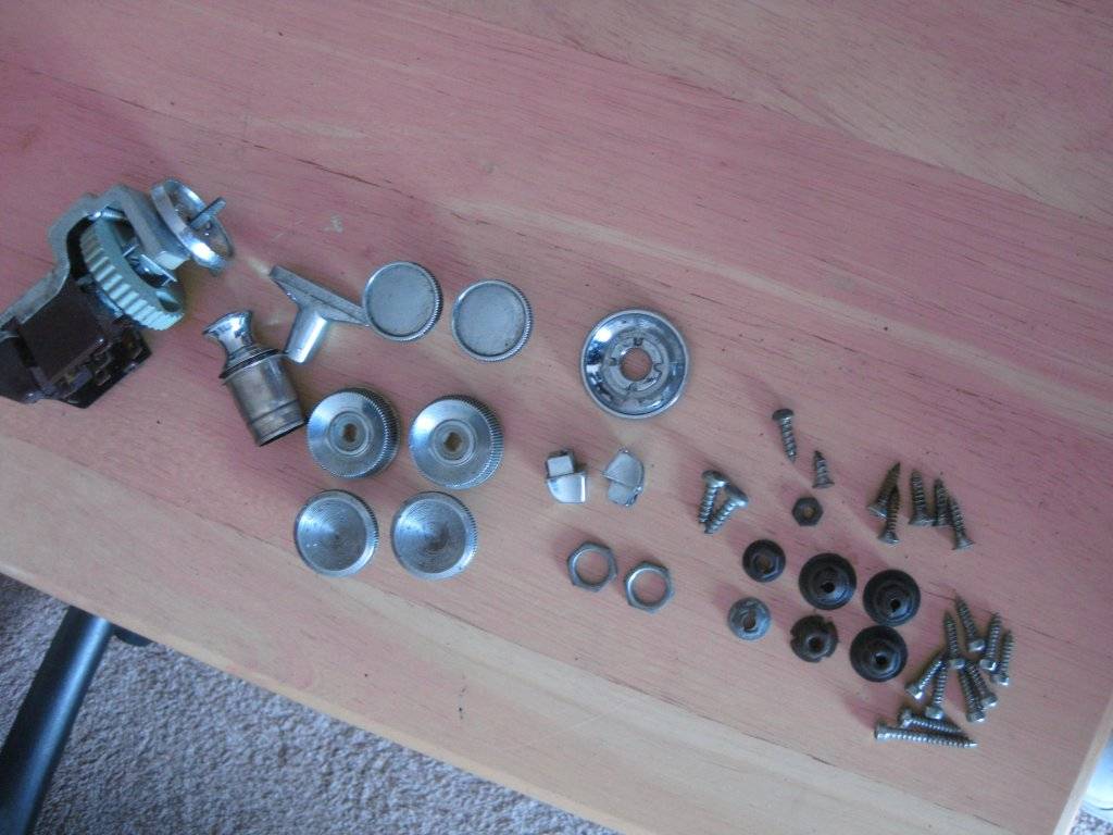 These are leftovers from a '66 Sport Fury that was parted out in the 1980's. Includes hard-to-find goodies like dash knobs and chrome bezels, fasteners (including set screws for knobs), headlight switch (untested), cigarette lighter (nice knob, heating element is worn). See the photo for more details. All the parts are used and may have small blemishes. Package deal price $25.00 for all, picked-up at Freehold, NJ 07728. If you need shipping, let me know your zip code and I'll figure it out.