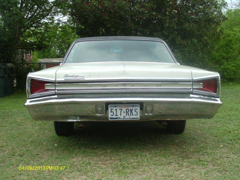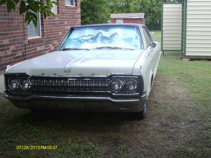 I want to offer a survivor 1965 Dodge Monaco. This is about as close to original as you can get for a non-restored vintage car. It is equipped with the 383-4bbl, automatic, PS, PB, AC and AM Radio. Regular crank windows, manual seats. The interior is original tan. Vinyl top needs replacing. Asking $3,500.00. Car is in Central Texas. Thanks for looking.
