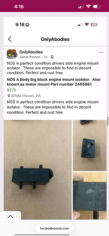We are reconditioning the 383 out of a 1965 Sport Fury, and we got a new set of engine mounts. After comparing the new ones, we realized that the driver's side bracket and the 2228 mount does not line up correctly.