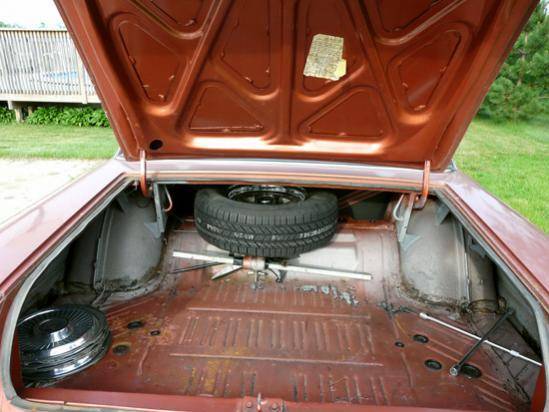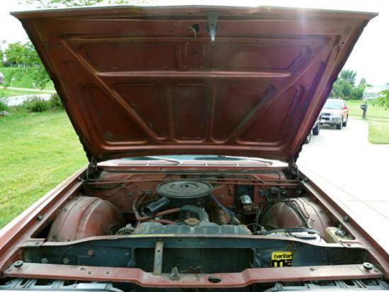 V8 318 CID 1-2BBL "LA" engine. The car has completely original exterior and interior. It has new tires, new Cragar rims, new brakes, new leaf springs, and new fuel line. Frame and undercarriage are rust free. There is some body rust as you can see in the pictures. It has less than 56,000 miles. There are a few small tears in the seams of the front seat otherwise the interior is very clean. The car runs great.