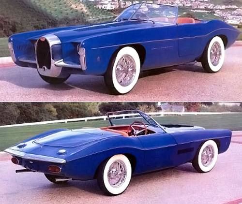 Yes, this 1966 Duesenberg prototype (based on a 1966 Imperial) was created by Ghia under the guidance of Virgil Exner. It was one of Exner's ideas for what he called "revival" cars which he first showed as drawings in 1963. (Exner was fired from Chrysler in 1961, replaced by Elwood Engel.) Others included the the Mercer depicted above (on an AC Cobra chassis) and a Bugatti prototype, also constructed by Ghia over a vintage Bugatti chassis and drivetrain.