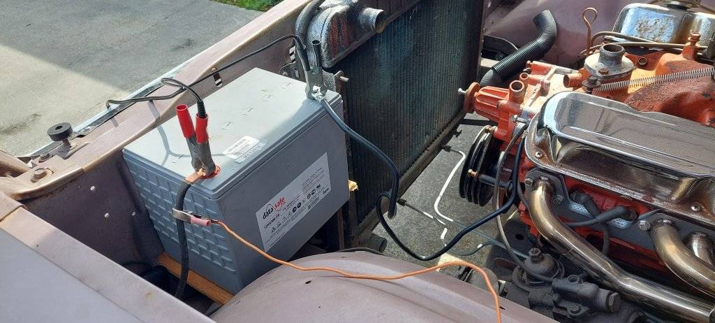 Here are a couple of pics showing my heater hoses.Obtained a free battery. It's not for cars and it's old and janky but it works well enough.