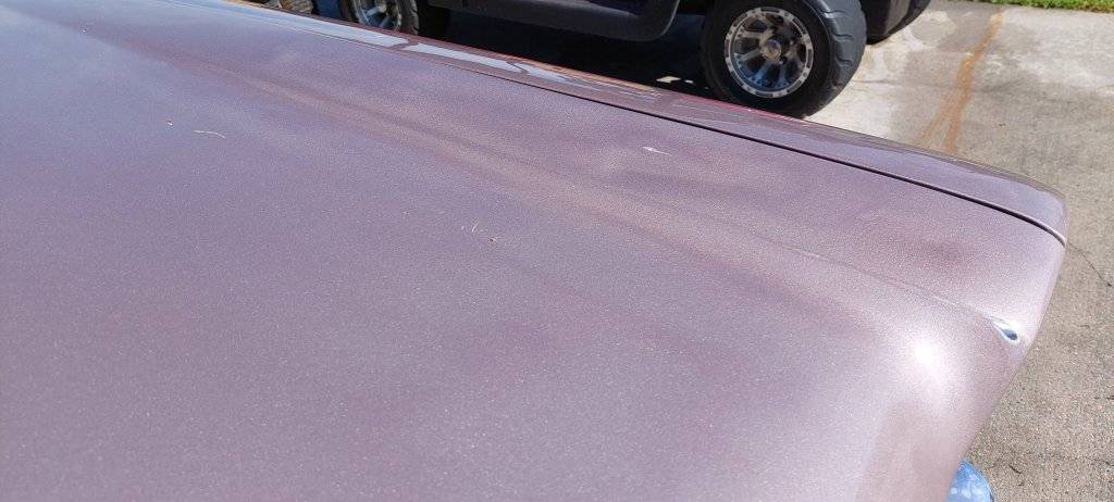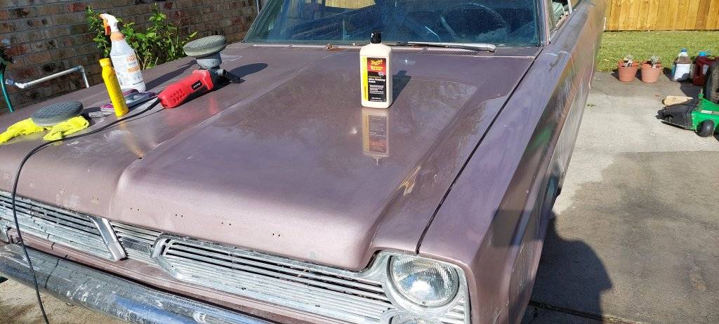 This had all manner of artifacts in and had the texture of a golf ball.If you machine polish metalic single stage paint you will get ghosting or tiger stripping.