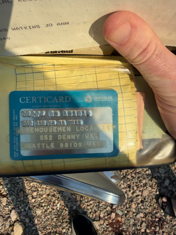 Looked at a 1966 Imperial convertible on Monday but decided to pass, I told the family i would get the word out if someone on here was interested. I have detailed pics I can send, family wants in the upper teens for it but I think is open to offers. Cool story behind the car. A local union in Seattle is the original owner on the certicard. I'm assuming that it was used as a car for the President of the union or something. The car was traded in at SL Savidge in Seattle and the 2nd owner was contacted by a salesman to come down and take a look at it. SL Savidge let him borrow it for the weekend to decide if he wanted it and he fell in love. The family still owns the car but unfortunately the 2nd owner passed away a couple years ago but its really cool its been one family owned since 1968. I think its still original paint with some dings down the sides and lots of touch up. Has some weird rust areas on the top but the bottom is totally rust free. It spend 20 years in Wisconsin in a garage after living in Seattle so the only thing I can think of is the humidity got too it. I took it for a test drive and it runs/drives really nice plus it has new tires. If anyone is interested send me a message, please serious only I don't have time to deal with tire kickers and I'm only trying to help the family. Some of the most beautiful survivors I have ever seen are lifelong Seattle garaged cars so keep that in mind. The car is in Lake Havasu City AZ.