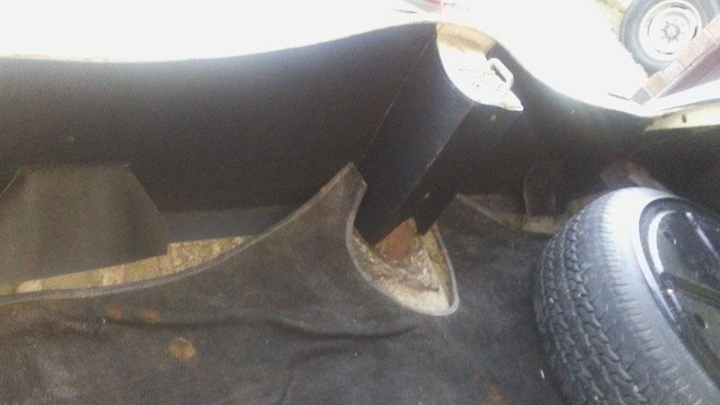 Got most of the trunk kit it this afternoon. It was 76* out, so it wasn't going to be wasted. Before and after pics of the trunk so far. New carpeting next week!