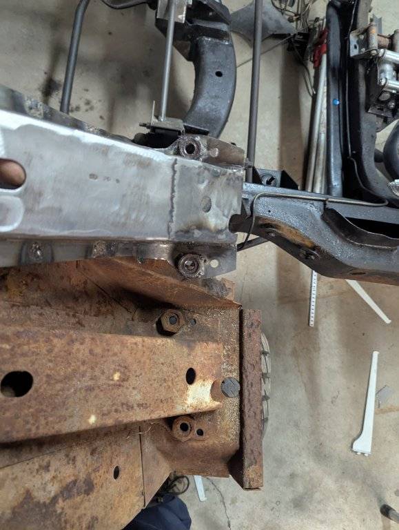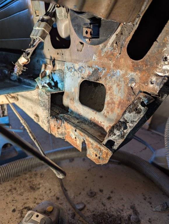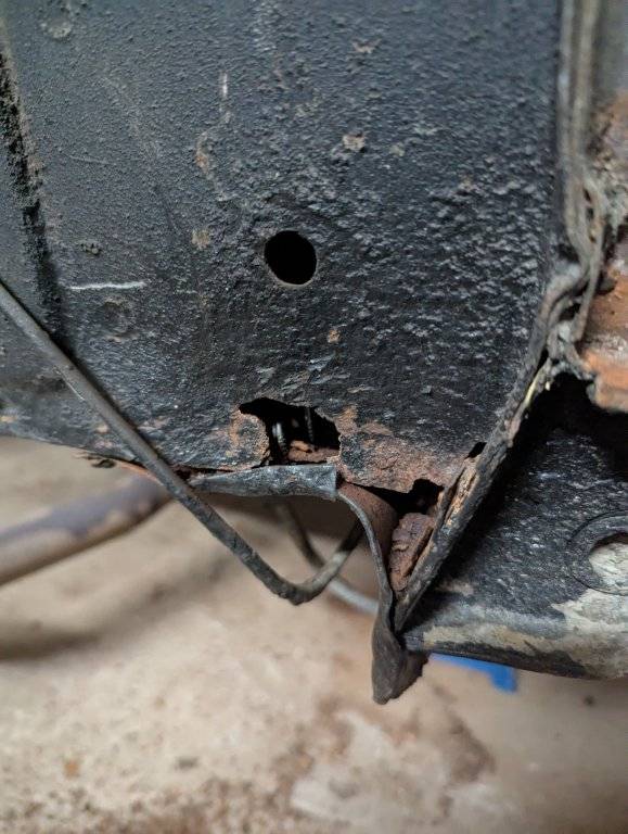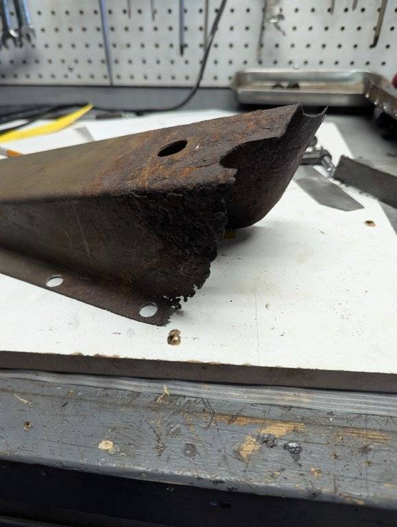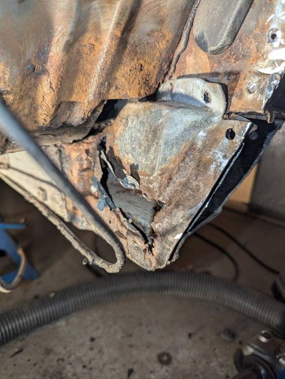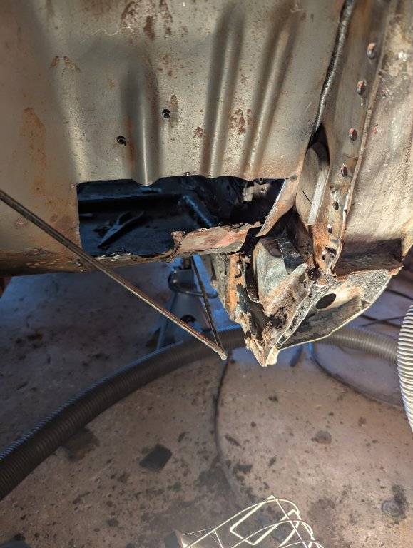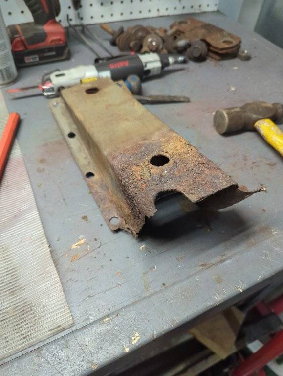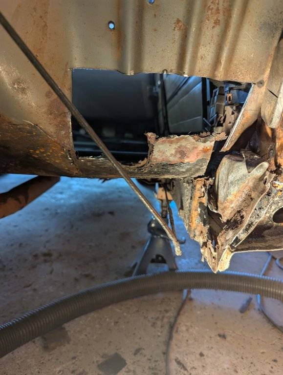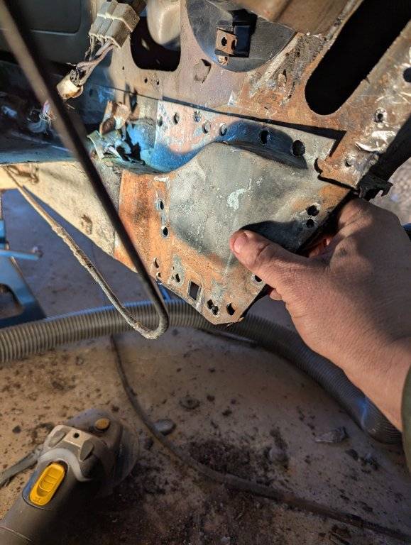 Stripped this mess off the car. The floor patch was laid over top of the old crap. It's a bit soft above the patch, so I'm going to bridge the gap with some new metal.