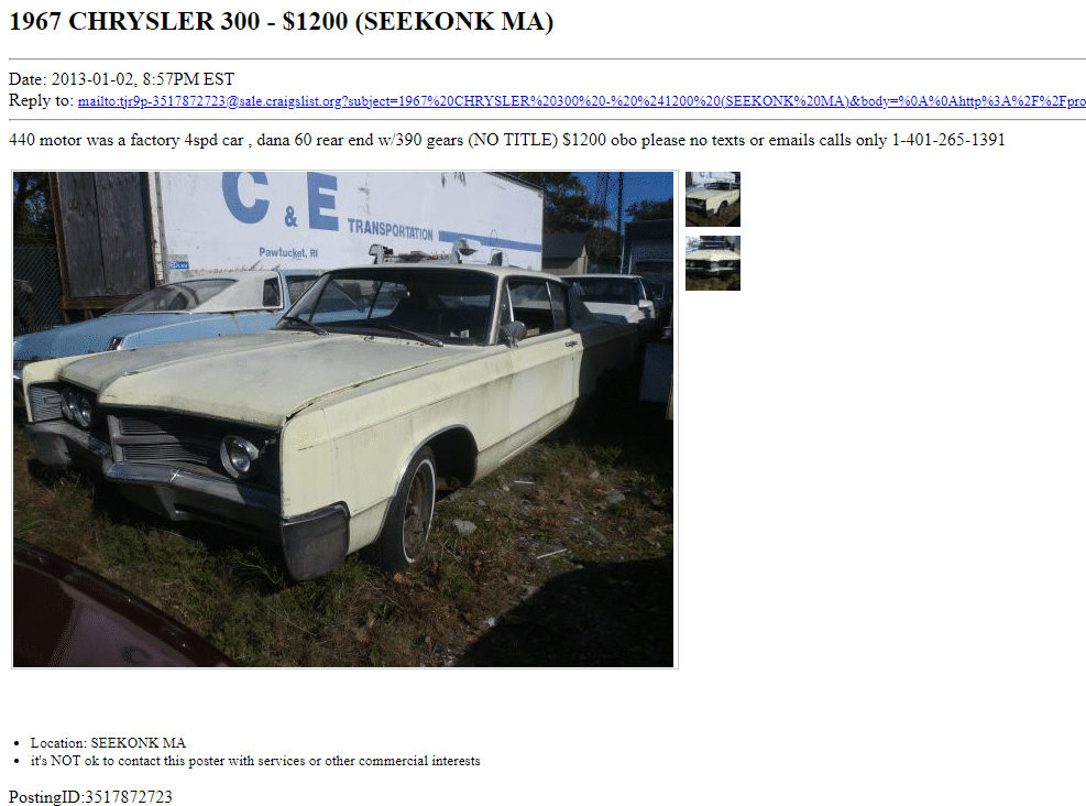 Love mine. The car was advertised in the Chrysler 300 newsletter. It was near me... but I had NEVER seen a 67 300 before!! The 66 300 was my favorite, so the 67 was as close as I could get.