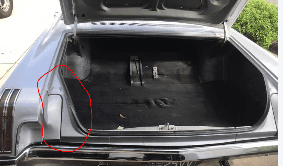 Red top with black "earmuffs," hmmm......wonder what they were thinking........ maybe it would work better withOUT the black earmuffs, which don't look like vinyl. Easily remedied, either by painting the rest of the top red, or going with the above suggestion on going back to silver..... Still, looks pretty decent, and it's hard to go wrong with this color combo. Definitely would want to see under that trunk mat. Wonder what the "mild Harley Davidson" sounds like...… Good thing about low optioned cars is that you don't have antique power accessories to worry about. Hope it finds a good home.....