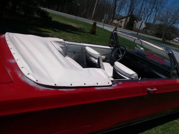 New Tires new emg.Break,New carpet,New Converable Top and boot ,Fixed Floor Pans New Muffler ,all lights work,ALL NEW HEAD LIGHTS AND OTHERS NEW COIL RESISTER, RELAY, WIPER BLADES,,Body needs to sanded and painted ,or leave it the way it is ,new motor oil,and trans filter and oil trans shifts Great.New radiator.AND HOSE'S. Seats were reupholstered Theirs a few marks on the front seats I tried to clean them .with no luck.. and bumpers rechromed some time ago... clean Title New gas tank and sending unit,,,All new break lines too...I keep the car garage kept and drive it about 1 mile every other day ..I also clean the bottom every once in a while