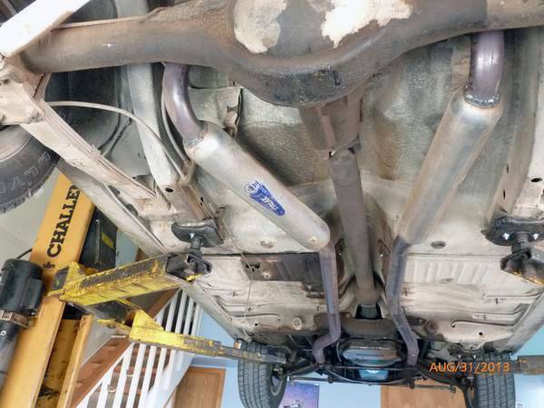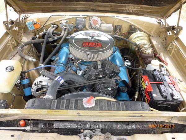 DRIVETRAIN: Original 383 was rebuilt to factory specs with an "RV" cam. I added a factory 4 bbl intake and a chrome Holley 600 carb. I have all the receipts. Approximately 5000 miles since rebuild. I upgraded to electronic ignition and voltage regulator, which included a new distributor and alternator. Automatic transmission shifts firmly and I suspect it was rebuilt in the past. Rear differential has highway 2.94 gears and the lube is fresh. I installed a power front disk brake kit and it stops great! Rear brakes were serviced. All new dual exhaust system with bullet mufflers and chrome tips exiting under the bumper. Sounds excellent, but not intrusive. "Hurricane" style aluminum wheels with like-new 65-series tires. Rear air shocks so you can adjust the car's rake to suit.