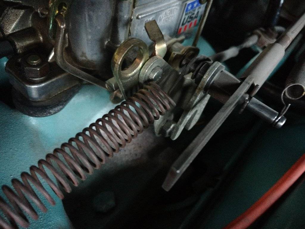 The issue is not only the lack of spring (which will effect upshifts under light throttle) but the position of the stud the linkage is on. It's too close to the centerline of the carb shaft, so the travel is not what it's supposed to be to maintain the factory feel and performance. Your conversion guy screwed it up.