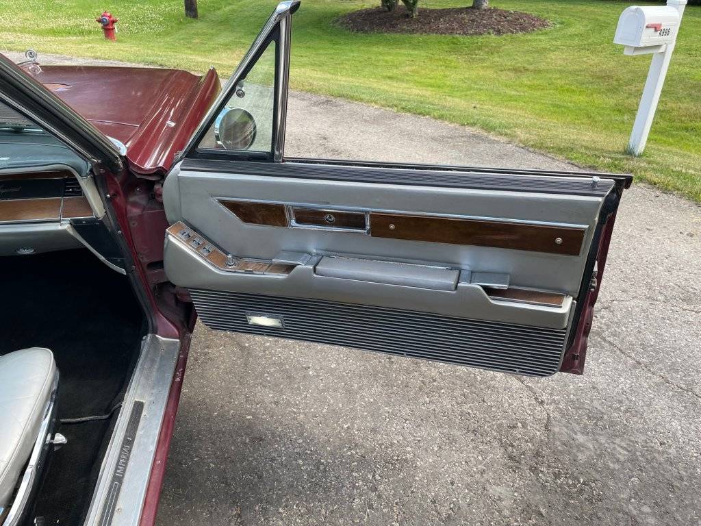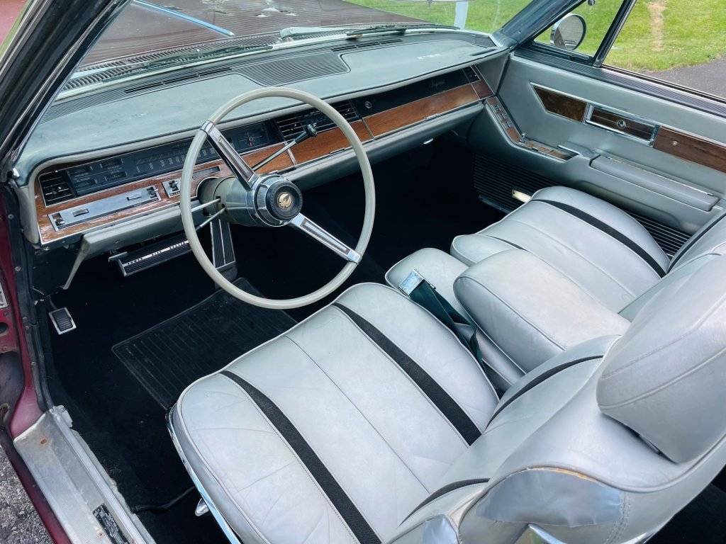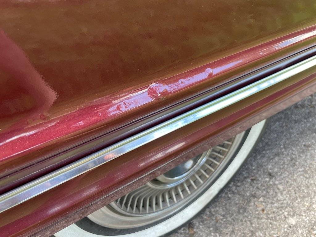 This is a super rare car, with only 577 produced for the model year. "Plum Red Metallic red" exterior with a silver leather interior. On top of imperials already being pretty well-appointed, this particular car was ordered with up-priced options such as power locks, power vent windows, headrests, am/fm touch tune stereo with power antenna, rear speaker, factory A/C, passenger side mirror, power seats, tinted glass, Tilt/Telescopic steering wheel, and a factory sure-grip rear. Originally sold in Hollywood Ca, the car made its way down to Phoenix and was there until the 90's when it came up to Michigan. The exterior of the car was restored in the at some point, and the shop who performed the work did a poor job of prep work. As a result, the paint, and bodywork is lifting in areas around the car. The floors appear solid from underneath with only one patch and a small spot of rust-through that I can see (see pic). The car was undercoated which is peeling off now, but what I can see of the floors are predominantly good. I don't have a lift, but I've done what i can to get decent pics by jacking it up. There are areas that need attention/bodywork once you get into it like the lower quarters and some spots on the front fenders (see pics), but the body looks pretty solid/straight. The interior is in nice shape, with the silver seats showing well. The driver's seat has 2 tears on the upper side bolster but otherwise, the seats, carpet, and dash are nice. The white leather roof is older and looks tired, though there are no holes or leaks and the rear window is good, along with all the rest of the glass. All the power options seem to work, with only one (dr rear window) being hit or miss and the power locks being even less reliable, so I don't mess with trying my luck.