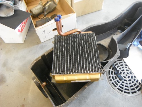 Finally getting to phase of putting things back together and not just disassembling all the time. Today the post lady brought the heater core, now it was time to put the heater box back together.