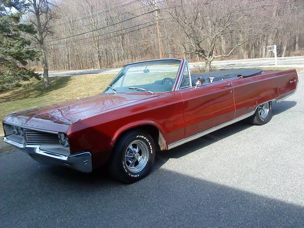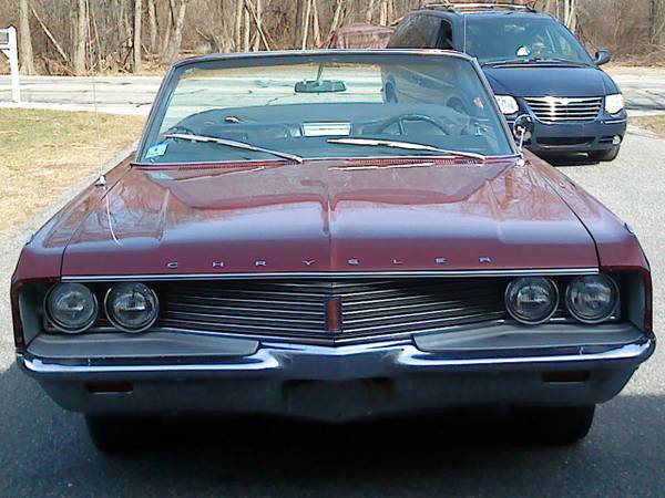 1968 Chrysler Newport Convertible. 383 V-8 Good running car. Recently had a lot of work done to her. Brakes were redone all around (lines, shoes, cylinders) new master cylinder, new muffler, new motor mounts, had the rear bearings replaced. Interior is pretty clean. Power top with glass window works as it should. Some minor rust on lower rear quarters.