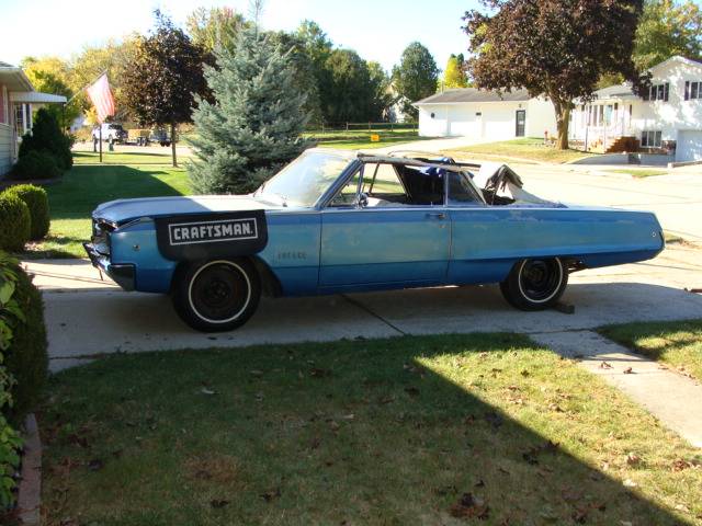 FS 1968 Polara Convertible, rust free Modesto , Calif car entire 55 years, 1205 made all engines, this one is original (H) code 383/330hp, with original engine HP components. GREAT patina, many new parts such as couple of floors pans (install by Wyatt on forum) stock valve job, new radiator, rebuilt alternator ,carb ,starter, runs and drives but has an engine miss. Needs top, (motor works) PS pump leaks. dash pad is crap $9K,Clear Wisconsin title and California paperwork. PM with any questions. Located in Chilton, Wi 53014 I can send any pix you want and if needed, contact Wyatt for reference