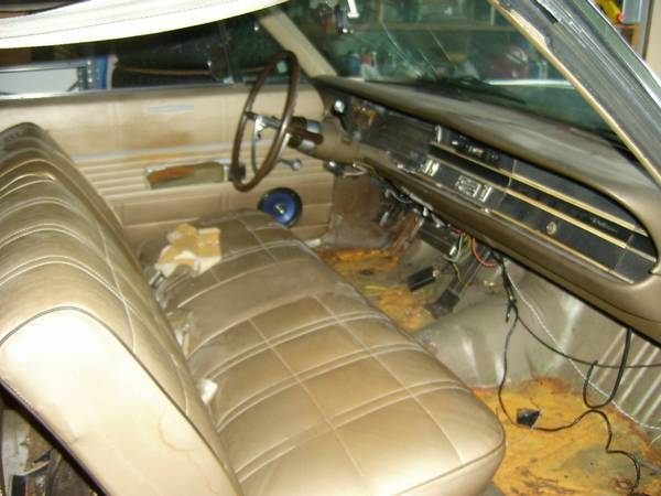 dual exhaust with factory exhaust manifolds, automatic transmission, PS, power drum brakes, no a/c. Has some rust in rear quarters and trunk but lots of rust under vinyl roof (large bubbles). Front windshield is broken and dash wiring harness has been damaged due to a wiring fire. Front end is in great shape. Car is very straight, front end is in great shape (hood, fenders, bumper, grille, etc.), rear tail lamps and chrome are very good. Interior is fair. If you want to apply for a new title this car would be a good project car. Engine runs well but fuel system is clogged. I've had it 10 years and need to move it out. No deliveries - bring your own transporter/tow truck. Please call to set up appointment to see the car if interested.