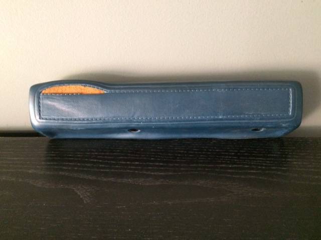 This is my 1968 300 drivers side door pull, the only real problem on the panel is this split in the one piece molded vinyl. As I see it, the blue piece was one piece vinyl formed then filled with foam and supports.