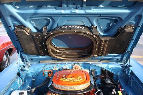 The exterior of the car was originally tan and completely redone in ppg ember gold. Very little rust repair was needed at all, the car was as solid as a rock to start with. All panels are nicely aligned. The hood has been customized with 68 Roadrunner inserts which set this car apart at shows, The Bumblebee stripe at the rear is also a great touch that makes the car stand out. Its vinyl and can be removed with no damage to paint. Some of the trim on the car isnt perfect, but it is all there. My reserve reflects the fact that some needs to be repaired or replaced at the new owners discretion.