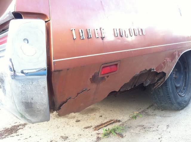 All the body lines look straight to me, that's a good sign. And it's no longer a virgin-metal car, so a different approach is needed. You simply don't do a 'full' restoration on this car as it will never be suitable for that. You fab up the trunk floor/extensions and quarterpanel patches from 16 ga sheetmetal. Maybe get floorpans from a 4dr and splice in as needed. It would be a lot of work but not terribly expensive (I've fixed quarters worse than this car). Fix it up with a cheap paintjob to be more presentable and enjoy it for a few years.