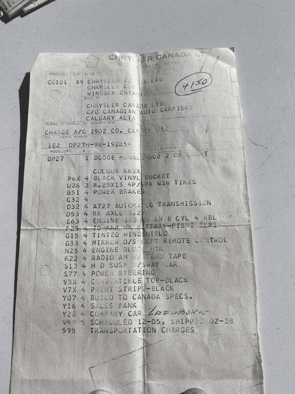 That thread clearly list the cars 1969 Dodge Monaco 500 Convertible Numbers