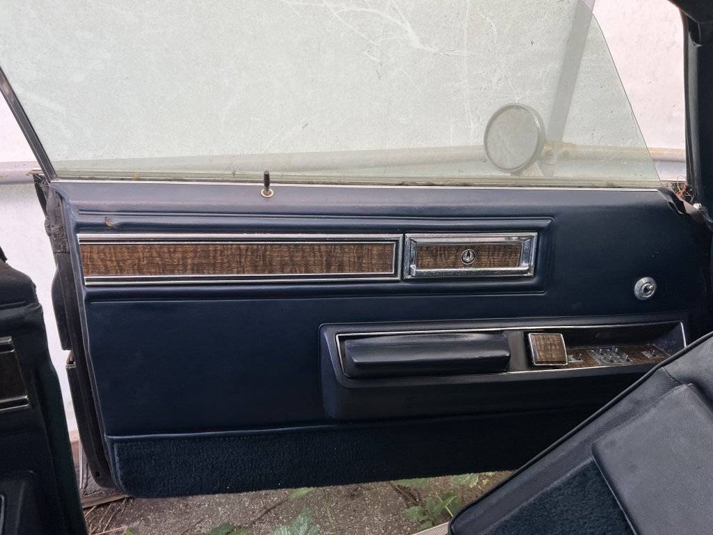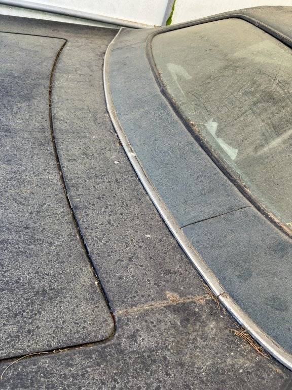 As for the roof, it is your typical vinyl car. The roof has bubbling throughout, most pronounced on the C pillars. Surprisingly there is little bubbling on the rear Dutchman panel. I climbed into the trunk, and looked through the bottom. There are three small pinholes where the trim meets the rear deck. Underneath the vinyl, on the passenger side, there’s approximately a 2 inch in length rust hole. Theres a similar 4 inch hole on the driver side. An expert can correct me, but It appears to be the inner layer of metal and not the outer layer. Pushing down from the vinyl side, there is no obvious holes. The entire middle area of the deck seems to be solid. Therefore, I do not believe the rear window needs a replacement panel from a donor car. I think some good patches could be made and the car would benefit from getting a colored painted roof in the future. The A pillars look solid with no bubbling underneath however, the top of the roof has a lot of bubbles.