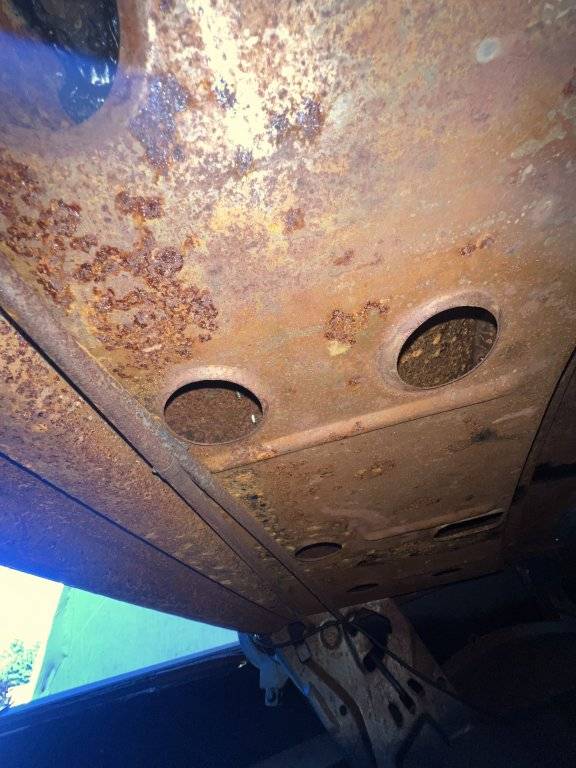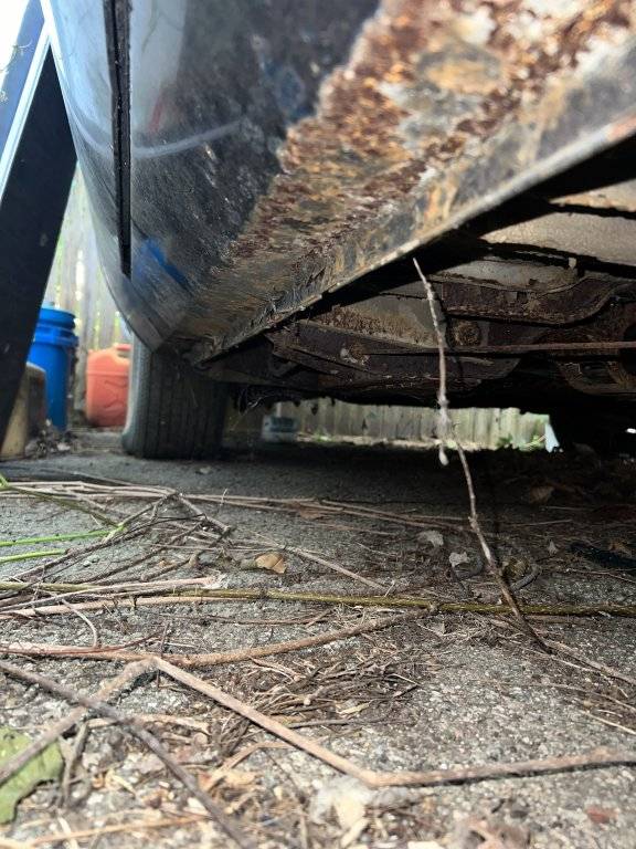 I looked at the rear frame (I forget the name) where the leaf springs mount and they look solid. The stub frame and torsion bars are solid. The K-Member is solid however, there is significant surface rust underneath the car. The muffler and exhaust being eaten through show the severity of it. It is clear to me that although there are no rust holes, if the car does not get out of the humid environment and get sealed (POR-15 or in a garage) in the next few years, that it will lead to serious damage. I did not look at the floor panels closely, but I assume they are good. I did not look at the trunk floor as it had the carpet but I assume it is good. Trunk floor is unpainted and bare metal which is concerning. The carpet was moist due to the humidity. The trunk gutters are surprisingly clean and no rust on the gutters. There is a small rusted through slit at the bottom of the trunk rail near the chrome bumper. Trunk lid itself looks great. Everything from the firewall forward looks good.