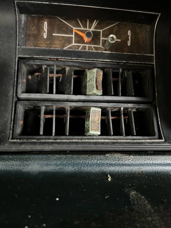 Interior: As far as I can tell, it has every single piece of the interior. The door cards are nice and there is a small tear on the driver door card. The carpet is surprisingly nice and could be reused. The seats and headliner are obviously destroyed. The rear shelf will need replaced. The seatbelts are surprisingly nice, clean and unrusted. Seat frames good. Glass is uncracked. As for the dashboard, it’s a mixup, good and bad. The dashboard is uncracked and items like the wood trim and the instrument panel are in very nice condition. However, pieces such as the Radio are severely oxidized. Even the AC vents are heavily rusted from what I believe are serious humidity exposure. This leads me to believe that while the dash is decent, the wiring behind the dashboard might be compromised from the humidity.