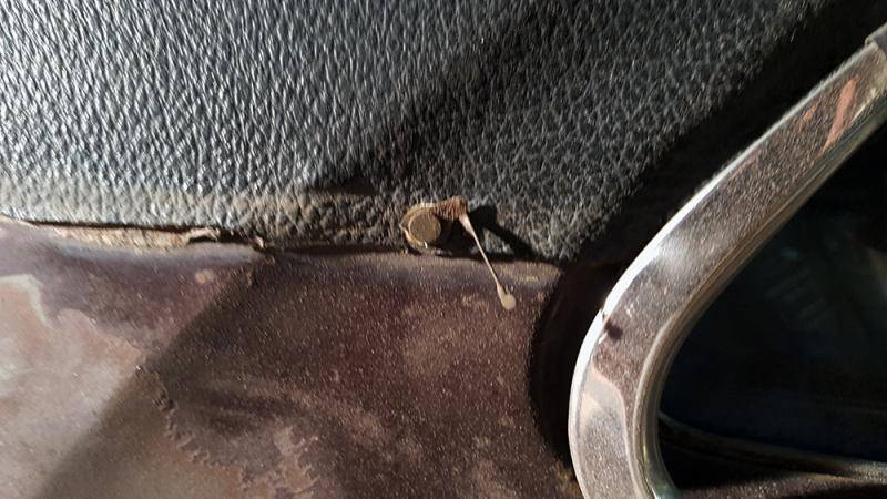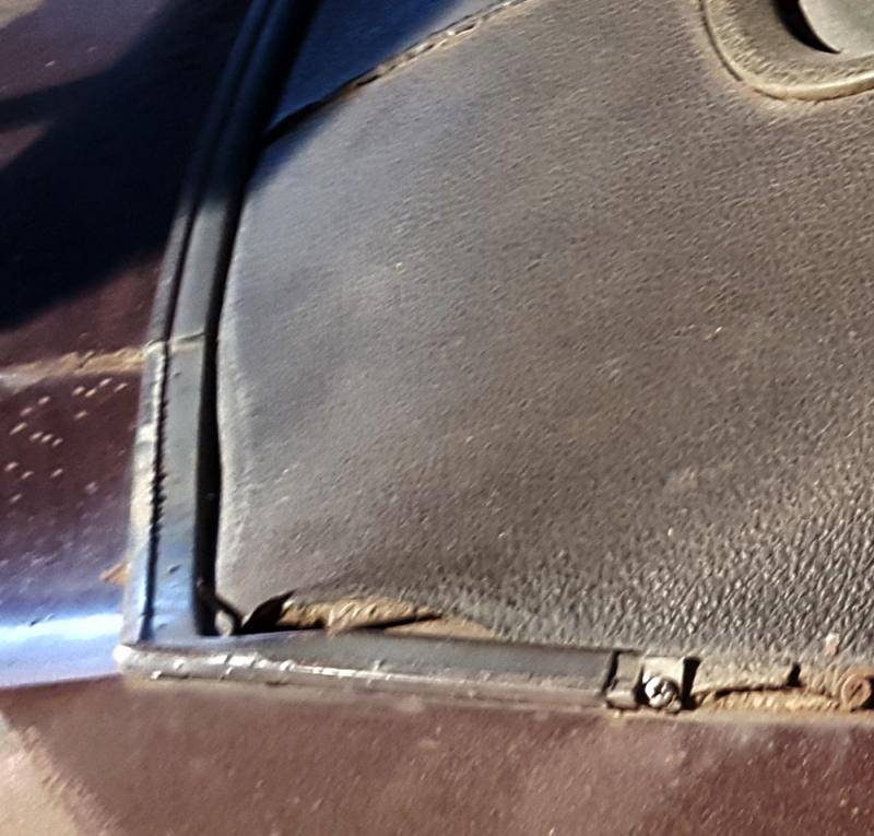 I broke off the corner piece of the vinyl roof trim, because it's the only trim piece that's bolted from the underside... -_-
