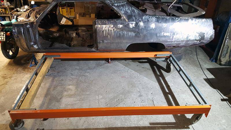 First step was to get the carcase rolling to get it out of my shop. And because special rolling boards are crazy expensive, I made my own from a scrap dolly and some heavy duty shelf posts.