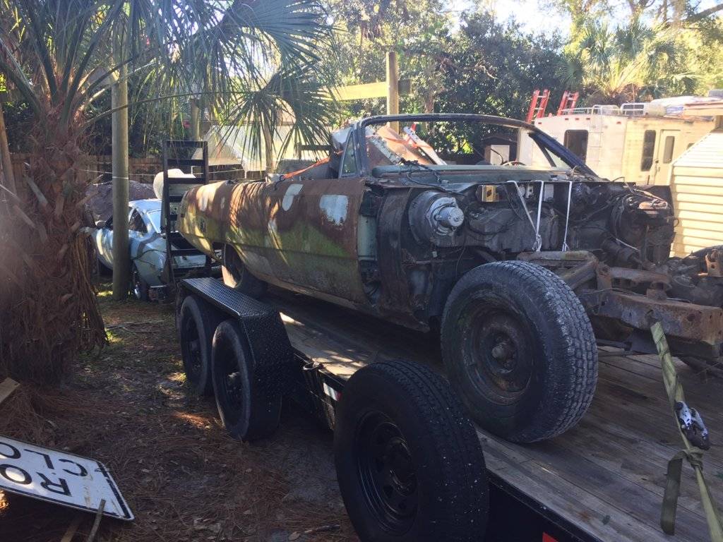 Listing for a friend not mine he sent me crappy pictures pm for phone number and I can get more info and pictures.1970 Chrysler 300 440 is gone and so is the trans rest the car is there all the stainless fenders hood grill bumpers decklid its all there floors are solid and frame rails. Convertible top frame is there car is pretty solid and a rare car comes with bill of sale located in central fl 34652 $1700 obo if not he wants to part it out. Update Pm and call me if interested Will get better pictures soon in the next few days I'm sure there is a small amount of rust in those areas being a rag top although we haven't spotted any holes anyplace. Make an offer on car as is if we had another complete 70 440 with manifolds that was stock bore complete he would include the matching numbers engine complete with machine work already done on the matching # swap only not included in this price. He has the correct # engine and trans was going to use it for another car but would swap out.
