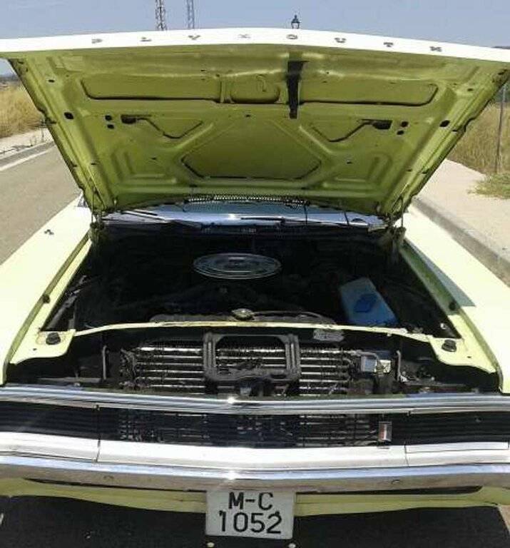 Sport Fury script on deck lid should not be mounted diagonally, it does have the correct sport fury side markers, so I suspect it was a sport fury to start with, also has the correct interior trim for the sport fury. Missing the rubber splash panel from the nose of the hood, I agree with the clutch pedal looking off but it may just be missing the rubber snubber on the stop. Very odd options for a 3 speed car. Car has also been repainted at some point as there is paint on the washer for the door striker and lots of orange peel on the top. Also has an after market washer bottle.