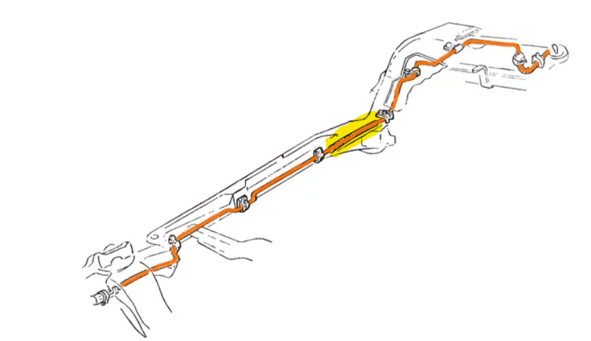 - steel fuel line : going over the rear axle, then down to the right side, and then running 2 feet alongside the rocker panel