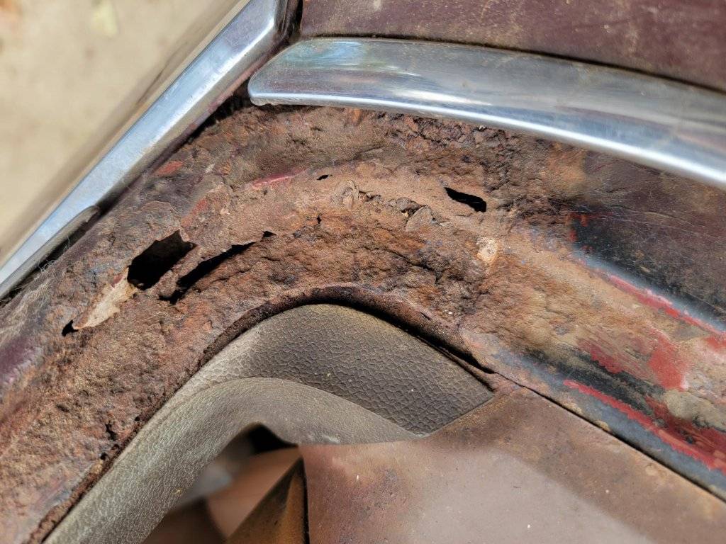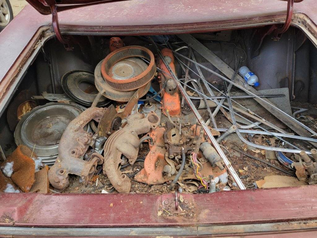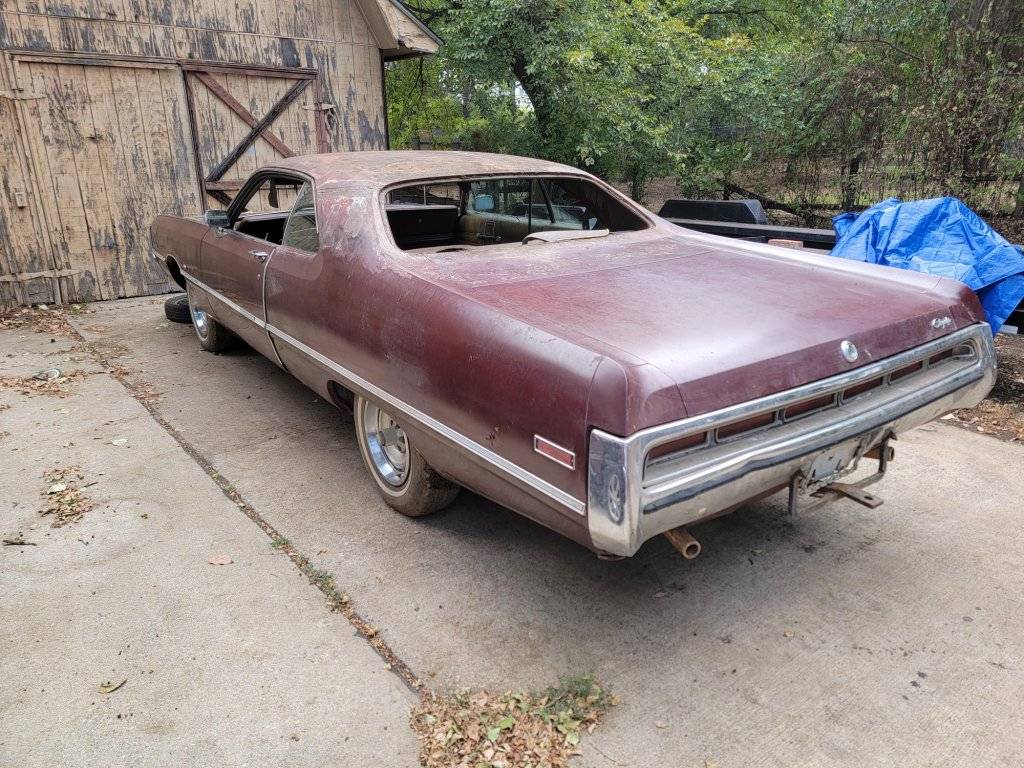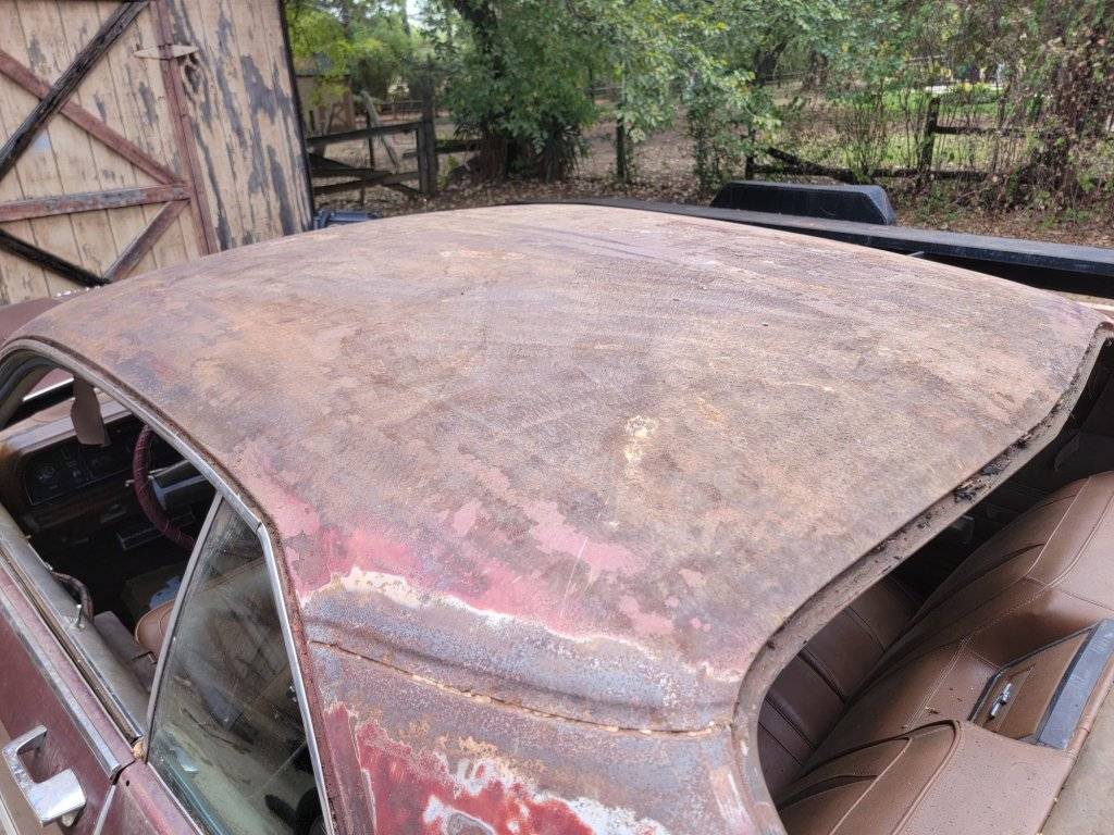 1971 Chrysler 300 2dr. Fairly loaded car including the E86 440. Picture of fender tag attached. Car is rough. It's an Arkansas car so doesn't have rust from but salt, but rather shoddy bodywork and sitting in humidity. Somebody replaced the vinyl top in the mid-90s and probably did not prep the roof right. It has rust around the front windshield chanel that will need metal work. Top has some pitting. Front and rear glass were broken by previous owner. Car had heads removed and they were refreshed which is why they are painted blue, but I do see Hemi Orange on other parts. Intake, carb and HP exhaust manifolds are in the trunk. Original dual snorkel air cleaner is missing comes with what looks like a late sixties air cleaner?