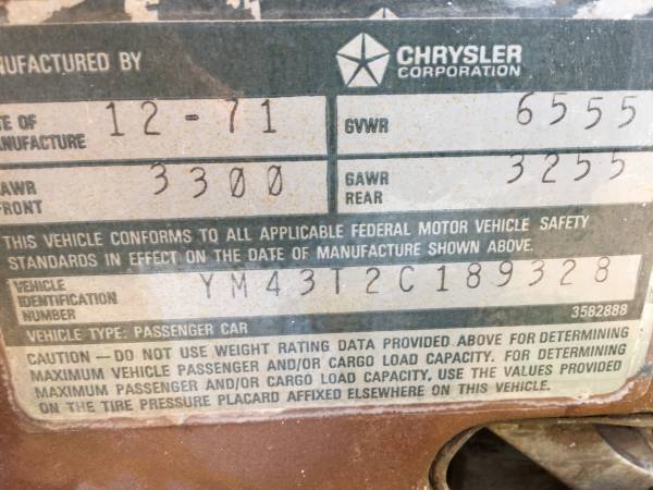 1971 Chrysler Imperial-one owner Finally got some pictures. Made video also. I just put new floormats in also.