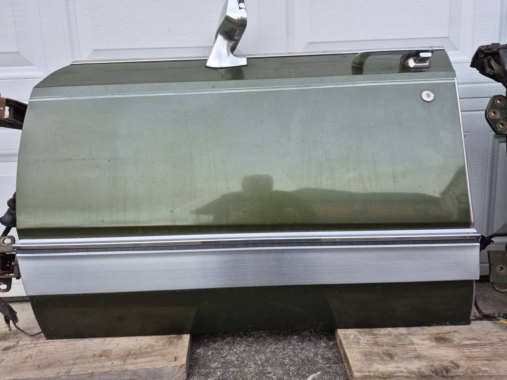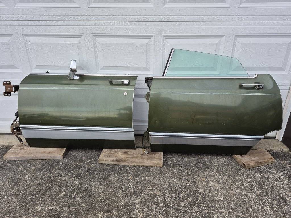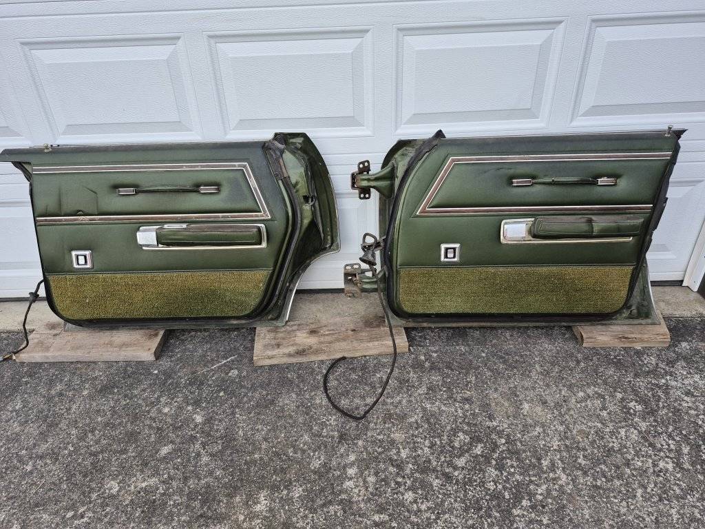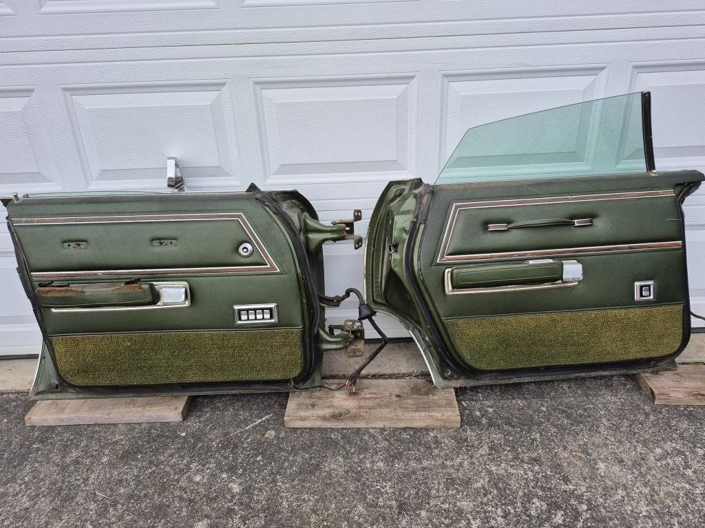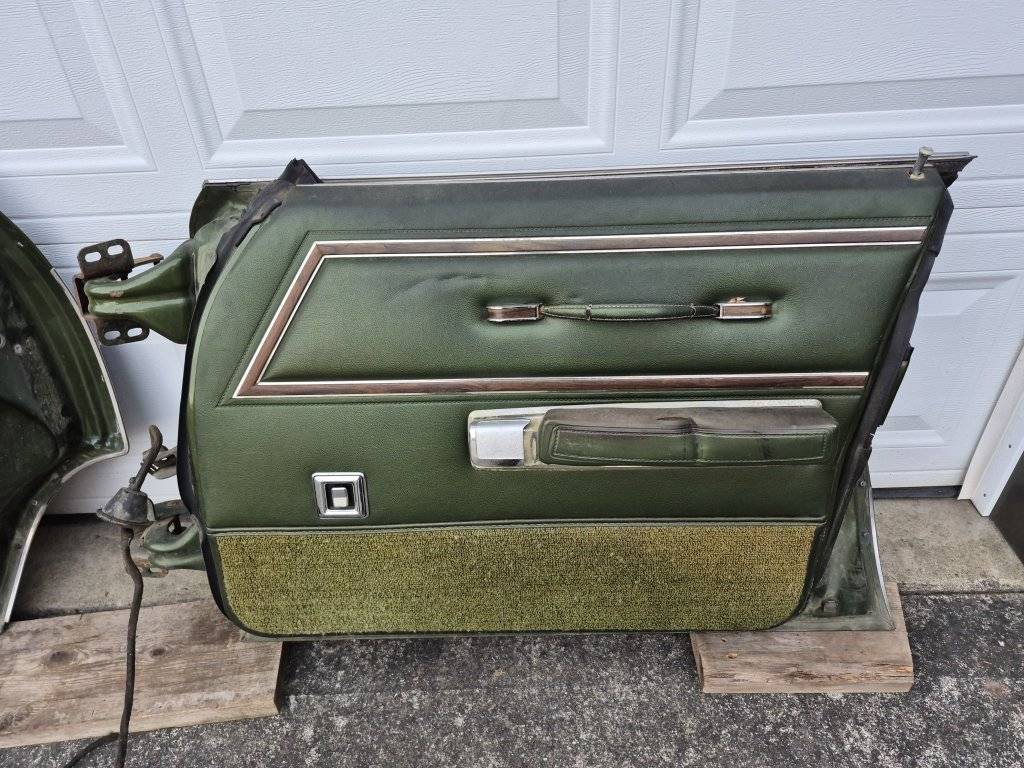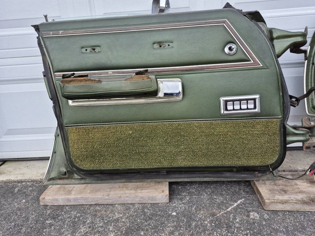 All 4 doors from a 1971 Chrysler New Yorker. Car spent its life in the central WA desert, so these are practically rust free. All are very straight with no major dents or dings. Tinted green glass. All power window motors worked when the doors were removed from the car, but the driver side rear window only worked with either the front door master switch or the switch in the door - I don't remember which. Rubber weatherstipping is still pliable and good. The interior door panels are quite nice and could be made good as new with a little effort. If the green color is not your thing, you can buy SMS Color Coat paints for the vinyl sections from Amazon and make them any color you want, they even sell SMS paint especially for the carpet sections. The lower exterior trim popped off the passenger side doors but is included. $250 OBO for all 4 doors. Pick up only near Bellingham WA 98226. See my other listings for more parts from the Triple Pickle car.