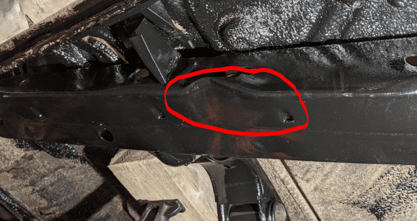 For anyone who does not know, the upper control arms are different. The drivers side, left side, is wider on the forward arm of the control arm, marked L. I think it's also cool that the factory paint ends short of the upper ball joint.