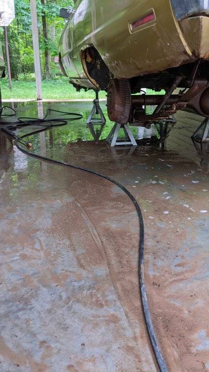Ben, Glad to see progress has been made. The car is in better condition than it originally appeared to be in. Consider a stand up model electric pressure washer from Harbor Freight. I am very happy with mine, which I have had for around 4 years. The exhaust hangers are available as reproductions but I can't recall where I saw them. I might have extras somewhere with somewhere being the key word. Good luck with your continued work on the car.