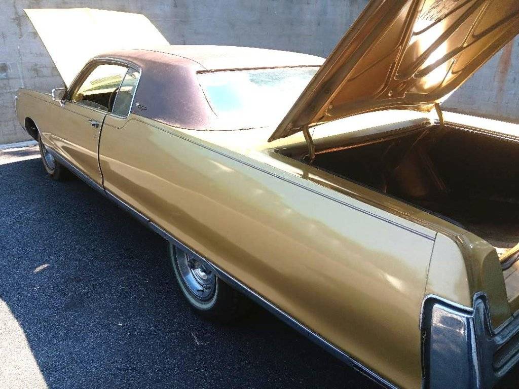 This is my 1972 Chrysler New Yorker. It's a 2-door base New Yorker with roll-up windows and manual seats. I've owned the car for 40+ years during which I've only driven it approximately 4,000 miles. I am the third owner of the car and got it in 1984 from a very dear family member who owned a few big Chryslers at the time. He didn't like the '72 because it was a 2 door and ended up letting it sit in his yard from 1978 to 1984, primarily using it as a storage shed. Tools, lumber and pieces of machinery were stored inside and account for the driver's seat cover being destroyed as well as stains on the carpet. After becoming the new owner in 1984, I put the car in dry storage and started fixing it up little by little. At the time I acquired it, the car showed 48,326 miles on the odometer (which was the mileage as of 1978). it now shows close to 52K. Impossible to prove it's original but I believe it is. That was also the opinion of mechanics who've worked on it due to the general tightness of the car and lack of wear on the pedals. There is no perforating rust on the car, save for one tiny spot in the rear trunk gutter which was due to accumulated dirt and leaves while the car was laid up and is an easy fix. There was a little rust in the lower front fenders at the the time I got the car in '84 but both fenders were replaced in the eighties with a pair of rust free fenders. Never any rust in the rear quarters. The passenger side door was also replaced in the eighties due to a dent. The car had a respray in the late eighties and also received a new vinyl top with incorrect grain and color. I did not know at the time that it was a non-vinyl car from the factory, it initially had a dealer installed top which was damaged while the car was laid up. I was quite young at the time, the car was just an older car and I did not know or worry about fender tag decoding. The rear window surround molding was never reinstalled. You can see in the pictures that the skinny row of body side moldings is off the car; but I have everything for it and in duplicates. Due to a demanding job and other pursuits men are generally interested in, I never really had the time to accomplish what I hoped to and mostly contented myself with keeping the car out of the elements (it has not seen a drop of rain in 40 years). In 2016, I took the car to a shop and had the brake system rebuilt with new calipers, wheel cylinders, master cylinder, brake lines, rotors and drums, and I had work done on the fuel system as well (new fuel lines, drop and clean tank, carb rebuilt). Due to major events, I haven't done much with the car since but it has been driven once or twice a year.