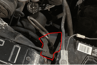 Good eye! I looked at it again, the red outline is the concrete under the car. The shroud does indeed seem to be strange.