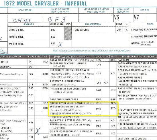 One of the reasons I was so gung ho on getting the books online was so the information was out there for everyone to access. I just happen to have a 72 Chrysler order sheet to help reinforce the point.