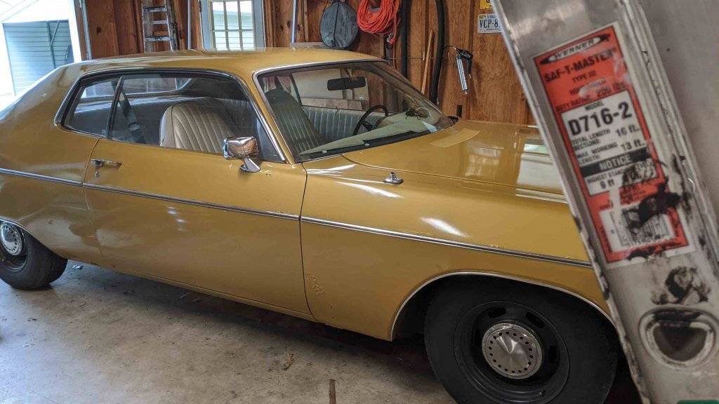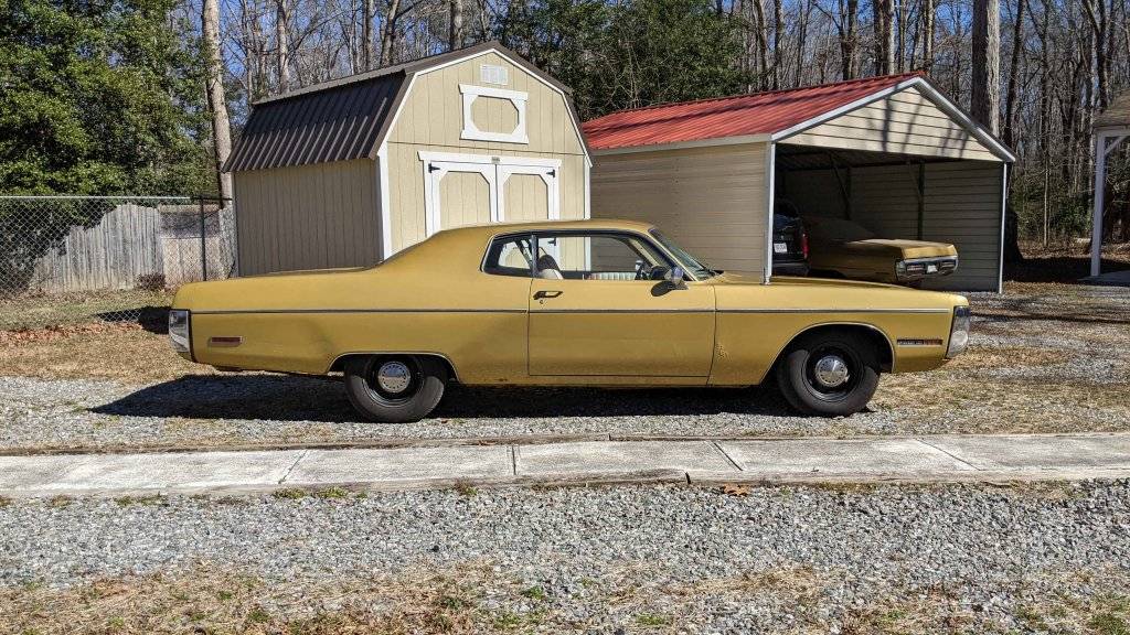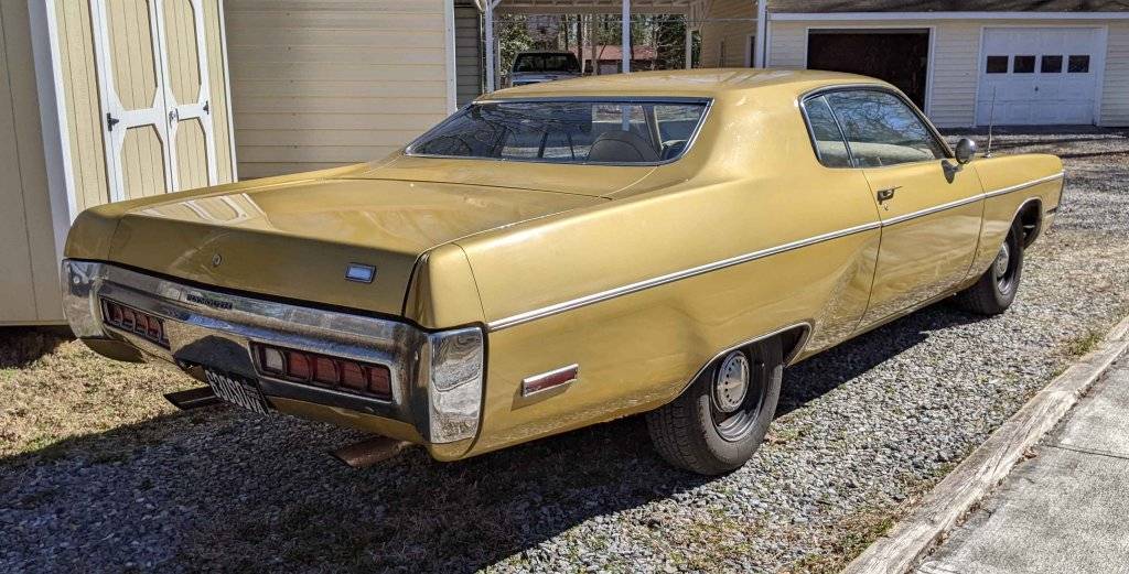 I told myself over and over, “No more projects!” …while spending a lot of time looking on the Internet at what was for sale. I came across this 1972 Fury III in Winona Lake, Indiana. I love the gold, the coupe, no vinyl top (and no rust concealed under it), no AC. My willpower cracked and I had to have it. It was for sale for $5000, which I thought was a bit much given the condition. The owner was selling, because he had won the car as an unexpected prize at a charity golf tournament, where he was closest to the hole on number 8. He provided many photos and was good to deal with. We settled on $4000. I considered flying to Indianapolis and driving the car from Indiana to Virginia, but thankfully reason triumphed. I had it shipped to my home by Metrogistics for $745. I thought I’d introduce the car and start a project stream. The 1st set of pictures are after my family helped me wash it.