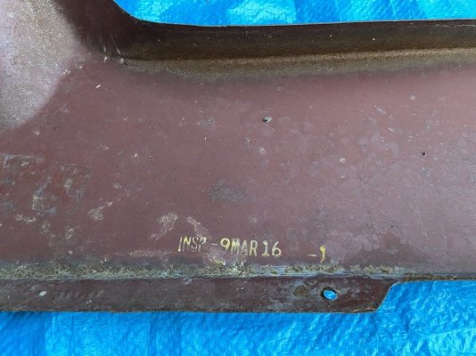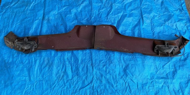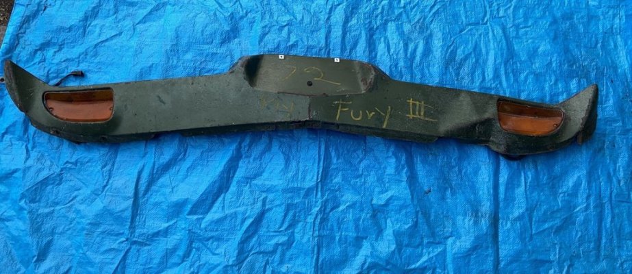 Front Valance - Nice condition, dented but very little rust. Still has the factory original red oxide primer and inspection stamp on the backside. The parking lamps are included $150.00