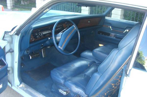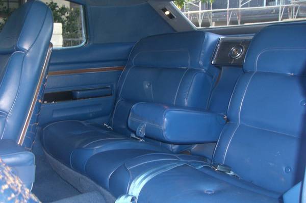 That's sweet! I like blue cars, and the light blue that was available on the "C"-bodies then was just spectacular. With the white top and dark blue leather, this is a looker. The seat backs appear crusty, but that seems to be the only obvious cosmetic issue.