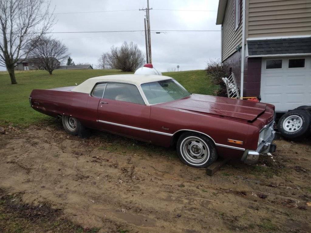 selling a 1973 Chrysler Newport,400 auto,does not run been in storage since 1977,that is not a typo still has 77 sticker on it,car is pretty solid little surface rust and some in trunk,missing front calipers,rad and noticed several freeze plugs missing in motor,motor turns by hand,have a title but not in my name came from an estate so selling as a PARTS or DONOR car. Car is located near Rochester Pa 15074. Sell whole for $2200. cop wheels do not go with it. Belongs to my son message me and i will give you his info if interested