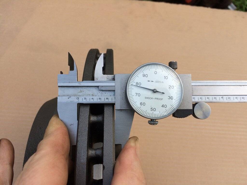 Here's one of those hard to find C-Body goodies. It's almost new, with less than 100 miles of use before the car it was on broke down for the last time. You can see that it still has the chamfer on both sides of the edge of the disc. Unfortunately I only have one. The terrible shop that worked on the car cut the other rotor down till one of the faces was about 1/8" thick. The reason the car broke down was because they forgot to put the alternator back on after replacing the fuel pump and the battery went dead. Have to love those big city shops.
