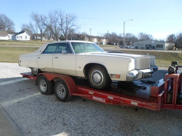 For sale: 1975 Chrysler Imperial 4 door hardtop. It is a one owner car I bought at the auction last week, I have the original title from 1975 for it. It only has 67,300 original miles on it and is loaded up, has every option besides the sunroof. Has the 440 motor with auto transmission, and 4 wheel disc brakes! Car has been sitting since 1990 in a garage but it fired right up with a battery and gas in the carb. I have already dropped the gas tank and started to bleed out the brakes, already got some petal! The interior is near mint and the body is driver quality with original paint, vinyl top in good shape, only minor surface rust on lower car. Im asking $2000 as of now but I will be working on it all week and the price will go up accordingly. Will be on the road by weeks end and I will be asking at least $2500 for it. I have all the paperwork to license it. Located in Salisbury, mo 660-8threethree-7250