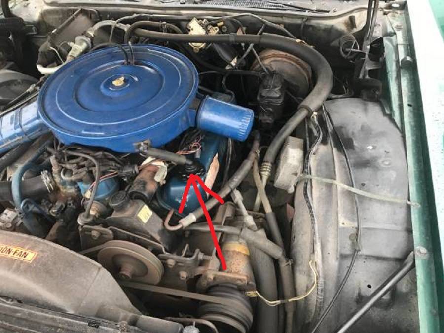 Oh, and that picture is of the Ford oil breather used from 1971-79. The other is as pointed out a vacuum canister. PCV is on the passenger side valve cover like always back then.