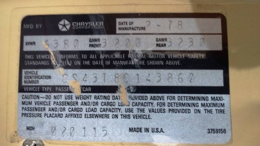 The car also has the two shop manuals, sale brochure, owners manuals, and the Dealer Ordering Book with fabrics, paint chips and details for the 1978 Chryslers. The orginial window Monaray Sticker is still in the rear window.