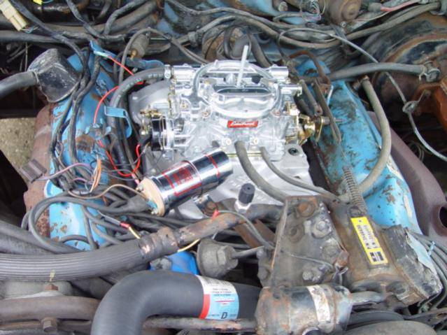 I finally installed the Edlebrock intake, carb, and air cleaner. What a difference that made. I eliminated most of the emission stuff. Coupled with duals from the manifolds back with flowmasters, she runs and breathes very good. I'll check fuel mileage and see how far past the 10.5 mpg she has been getting. I have a nice set of Mopar Performance finned aluminum valve covers to dress it up a little.